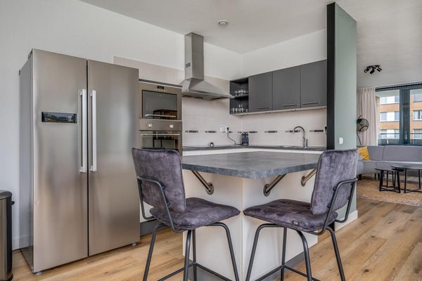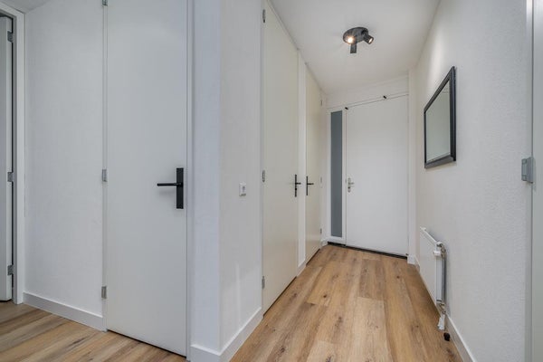 Het gehele appartement is voorzien van een recent geïnstalleerde PVC-vloer en heeft extra hoge plafonds en binnendeuren, wat zorgt voor een ruimtelijk effect. Vanaf het balkon een prachtig uitzicht op zowel de Jasonweg, de speeltuin, het voetbalveld en een vrij uitzicht!