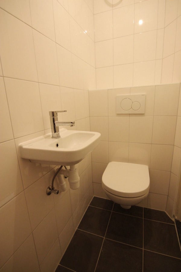 • De recent vernieuwde badkamer heeft een toilet, wasbak en douche.