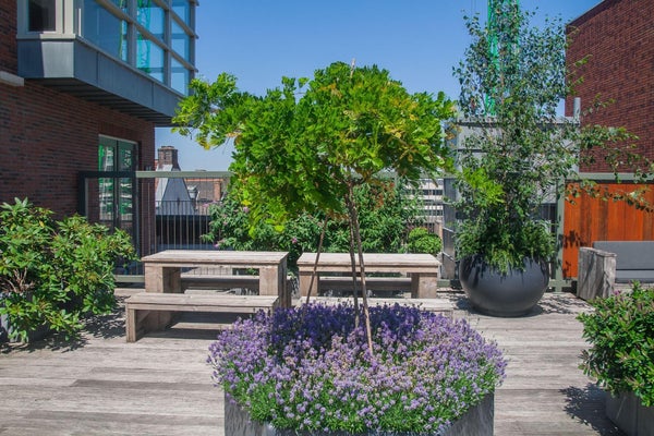 Centraal aan het Westplein gesitueerde stijlvolle ingang met intercom met videofoon.