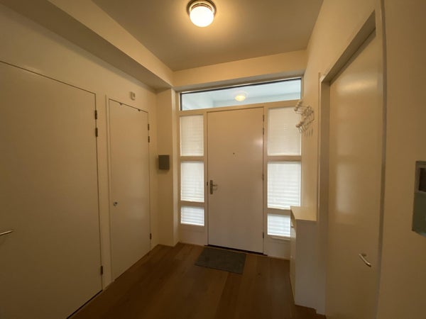 Entree, gang met toegang tot toiletruimte met hangend watercloset en fontein.