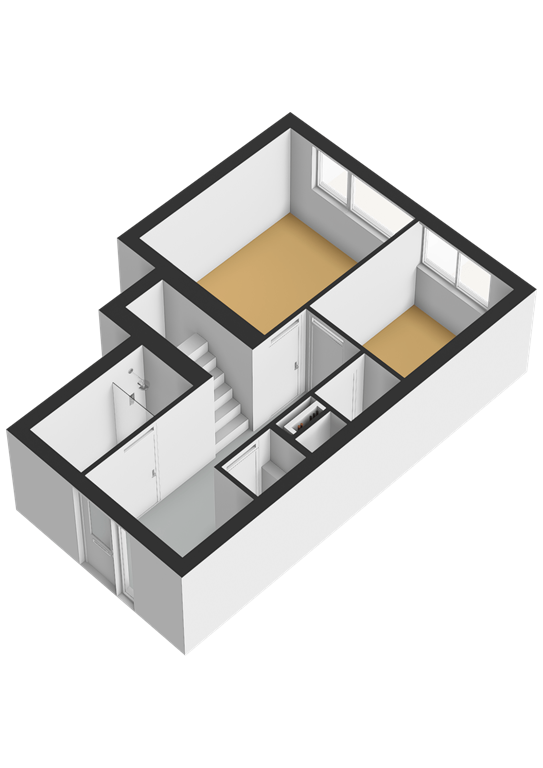 Via de entree komt u binnen in een zeer ruime hal met garderoberuimte, die toegang biedt tot alle vertrekken op deze verdieping. Aan de achterzijde bevinden zich twee slaapkamers van circa 13 m² en 7 m. De volledig betegelde badkamer is modern uitgevoerd en voorzien van een inloopdouche en een dubbele wastafel met meubel. Het separate toilet met fonteintje is bereikbaar vanuit de hal. Daarnaast is er een aparte wasruimte met wasmachineaansluiting, die tevens gedeeltelijk kan dienen als bergruimte.