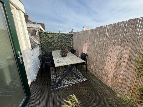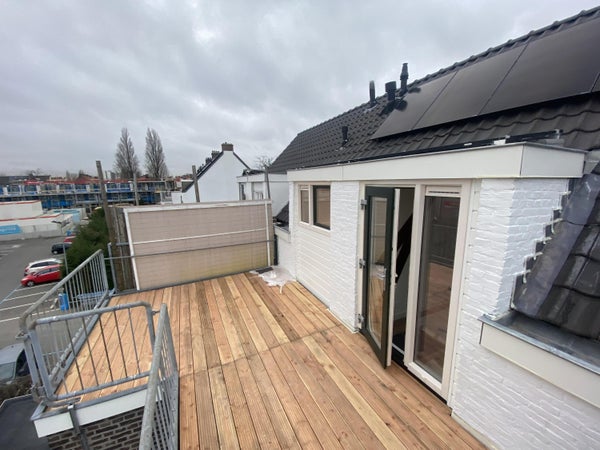TE HUUR Ruime, lichte, gestoffeerde dubbele bovenwoning met balkon en dakterras!