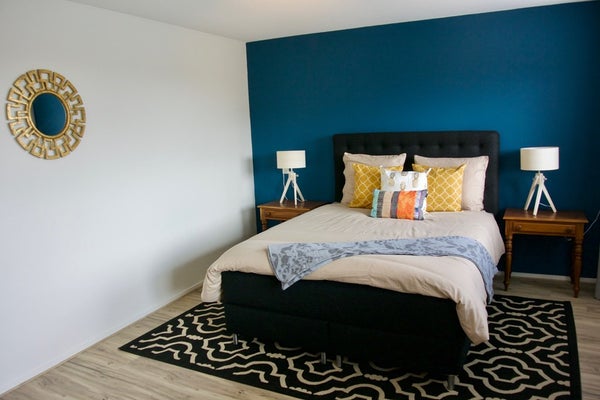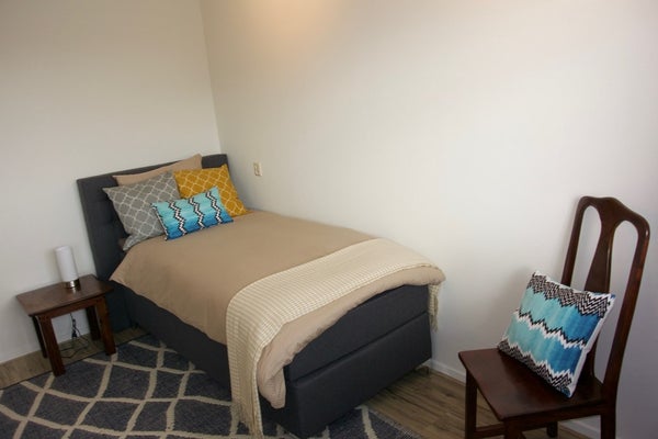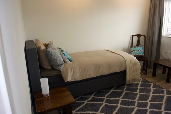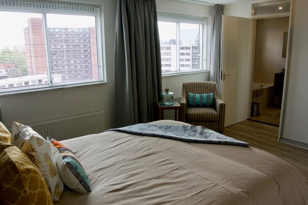 De grootste van de andere twee slaapkamers heeft een kast, nachtkastje en stoel en kan worden voorzien van een bed. De kleinste slaapkamer kan worden gebruikt zoals je dat wilt en is daarom niet gemeubileerd. Deze ruimte kan worden gebruikt als een eenpersoons slaapkamer of als een studeerkamer met een bureau.