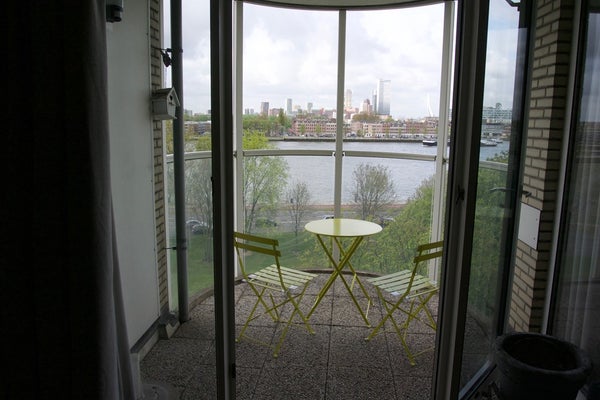 Geniet van je lekker bereide maaltijd op je balkon met weer dat prachtige uitzicht op de skyline van Rotterdam.