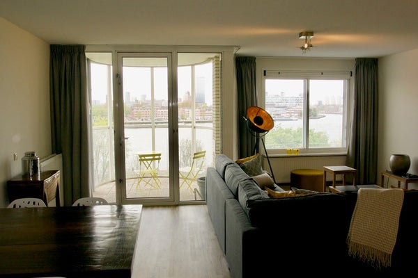 Een magnifiek en volledig ingericht appartement met 3 slaapkamers en 2 badkamers met een adembenemend uitzicht op de Maas, beschikbaar op de 7e verdieping in het hart van Rotterdam.