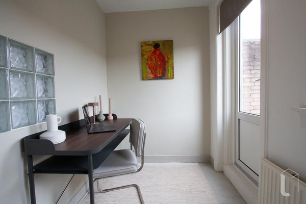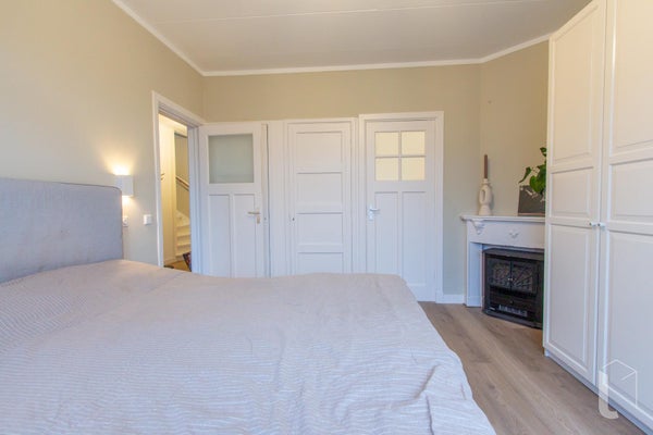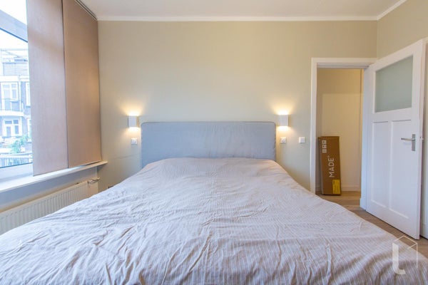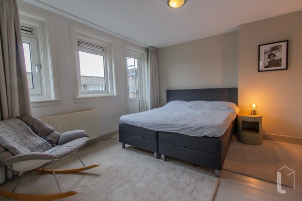 Het appartement beschikt over twee slaapkamers, beide voorzien van een tweepersoonsbed. De eerste slaapkamer ligt op de tweede verdieping aan de achterzijde; de tweede, zeer ruime slaapkamer bevindt zich op de bovenste etage. Daarnaast is er op de bovenste etage een aparte studeerkamer aanwezig.
