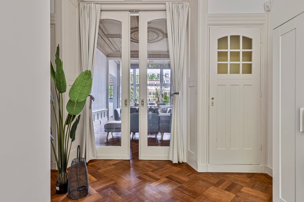 Een paar treden leiden u naar de deur van dit statige pand, links van de deur treft u de videofooninstallatie en de brievenbussen. De deur geeft toegang tot de vestibule, waar zich de gas- en watermeters en de trapopgang zich bevinden.