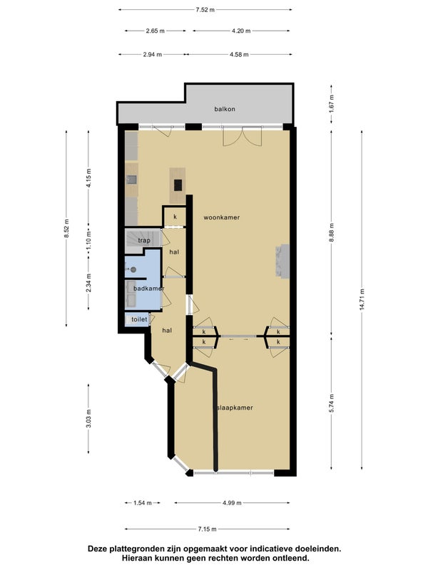 De hal geeft u toegang tot alle ruimtes. Zodra u de woonkamer binnenstapt valt direct het hoge plafond met unieke ornamenten op. De woonkamer is voorzien van een houten parketvloer en geeft toegang tot de slaapkamer en de tuin. De keuken is luxe en heeft een moderne uitstraling. De keuken beschikt over een kookeiland en er is véél kastruimte! De inbouwapparatuur in de keuken is allemaal van Siemens. Er is een inductie kookplaat met downdraft-afzuiging, vaatwasser, koel-/vriescombinatie, losse grote oven, combimagnetron en er is een Quooker kokend waterkraan.