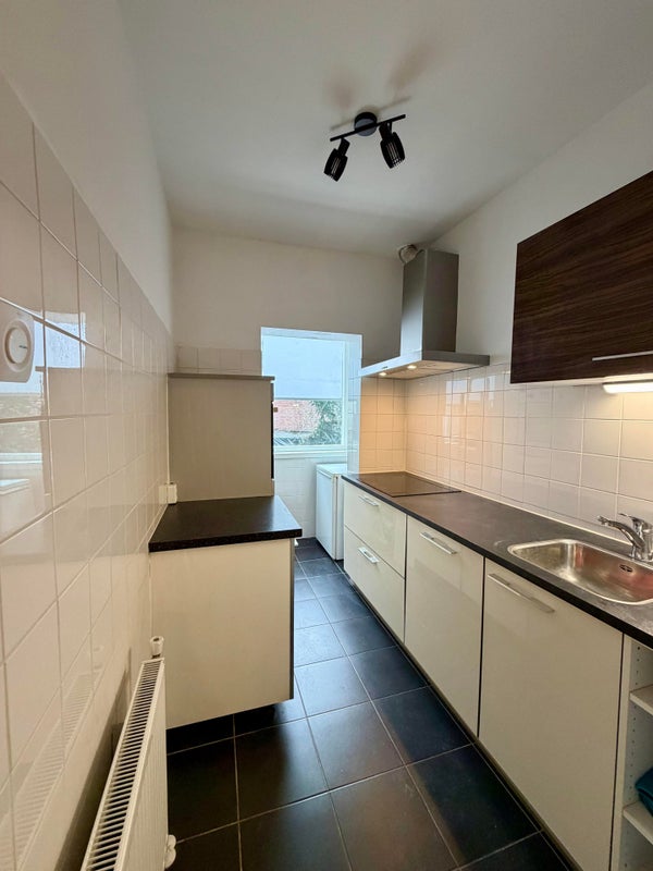 Aangrenzend aan de woonkamer bevindt zich de moderne keuken, uitgevoerd in een tijdloze stijl en voorzien van een inductiekookplaat, afzuigkap, oven, koelkast, vriezer en vaatwasser, evenals een separate close-in boiler. Naast de keuken ligt een praktische bijkeuken met wasmachineaansluiting.