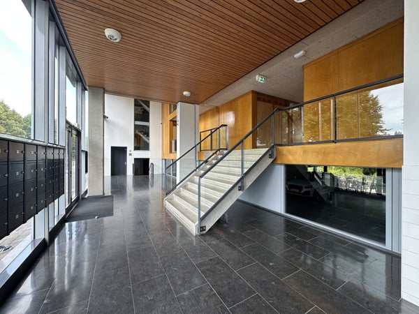 Representatieve hal met toegang tot de liften, bergingen en het trappenhuis.