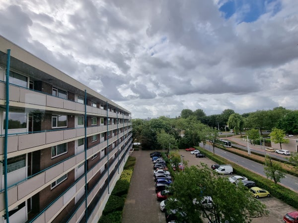 Gestoffeerd, 3-kamer appartement aan de Wilgenplaslaan te Rotterdam-Schiebroek. Dit appartement is gelegen op de 5e verdieping van het flatgebouw “De Hildegaerde” en beschikt over een ruime L-vormige woonkamer, 2 slaapkamers en een groot balkon.