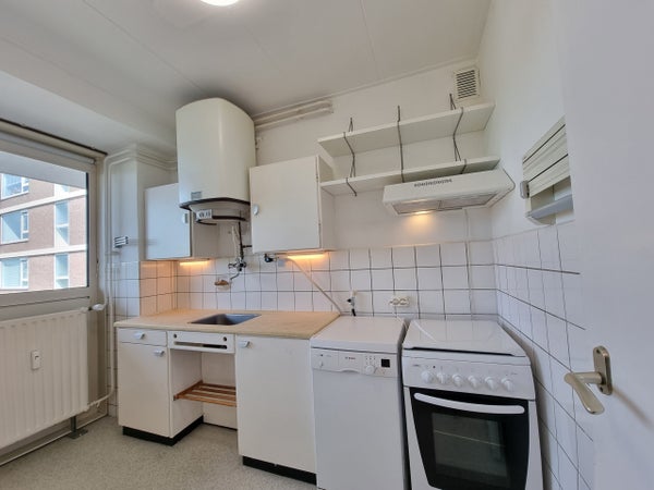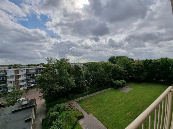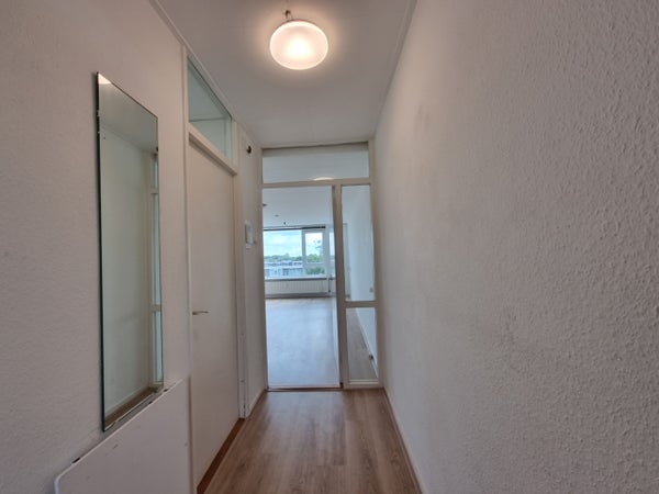 Entree met hal tot alle vertrekken. Hal met toegang tot alle vertrekken. De woonkamer biedt toegang tot een ruim en zonnig balkon op zuid-oosten. De klassieke Bruynzeel keuken in lichte kleurstelling is voorzien van een diverse apparatuur, zoals een elektrische oven, 4-pits gaskookplaat en vaatwasser. 2 ruime slaapkamers aan de voor- en achterzijde. De badkamer is middels slaapkamer I te betreden en is uitgerust met een ligbad en wastafel. Ook bevindt zich hier de aansluiting voor de wasmachine en droger. Bijzonderheden:- 6 inbouwkasten- Wasmachine aanwezig- Glasvezel internet- Dagelijks een huismeester aanwezig- De huurprijs wordt vermeerderd met €63 voorschot stookkosten- De huurder dient zelf contracten af te sluiten voor TV, Internet overige nutsvoorzieningen