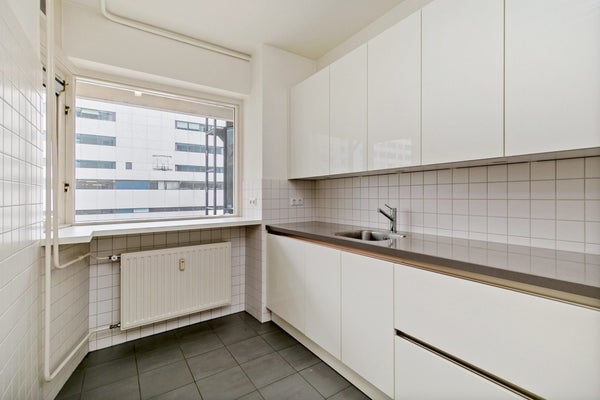 Het appartement is toegankelijk via een afgesloten entree met brievenbussen en lift. Bij binnenkomst in het appartement kom je in de hal die toegang biedt tot alle vertrekken. De lichte woonkamer heeft grote ramen en een neutrale vloer. De aparte keuken is voorzien van boven- en onderkasten, een aanrechtblad en standaard inbouwapparatuur. Het appartement heeft een woonoppervlakte van circa 84 m2, één ruime slaapkamer en een betegelde badkamer. Er is een separaat toilet aanwezig. Vanuit de woonkamer is er een prettig stads uitzicht over de omliggende gebouwen in het centrum van Rotterdam – met winkels, restaurants en openbaar vervoer allemaal op loopafstand.