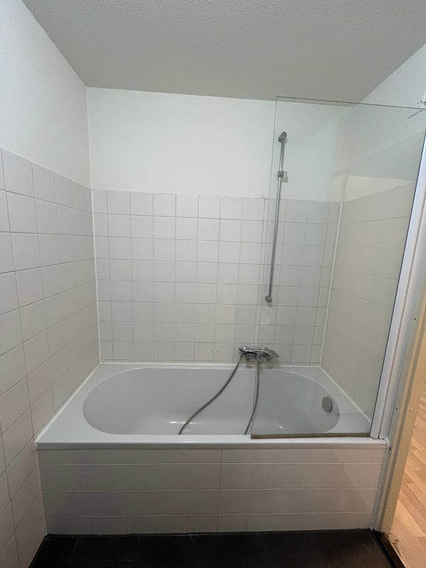 entree, ruime hal. Woonkamer met open keuken. Balkon aan de voorzijde, bereikbaar via woonkamer. 1 slaapkamer en een badkamer v.v. een bad en wastafel.
