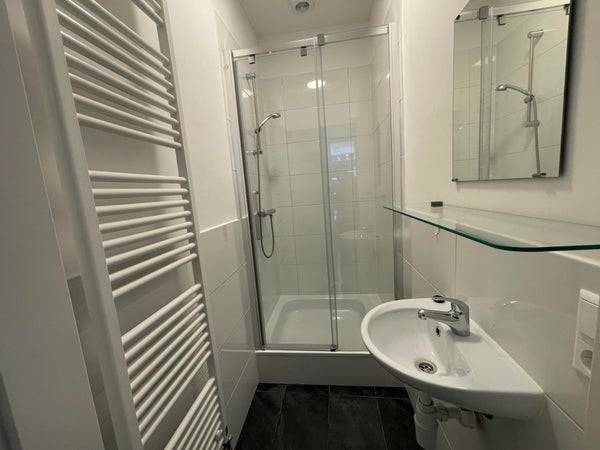 Nette studentenkamer. Eigen keukenblok met wasbak, afzuigkap, kookplaat en koelkast. Badkamer en toilet is gedeeld met één ander appartement.