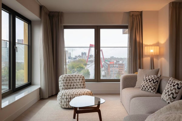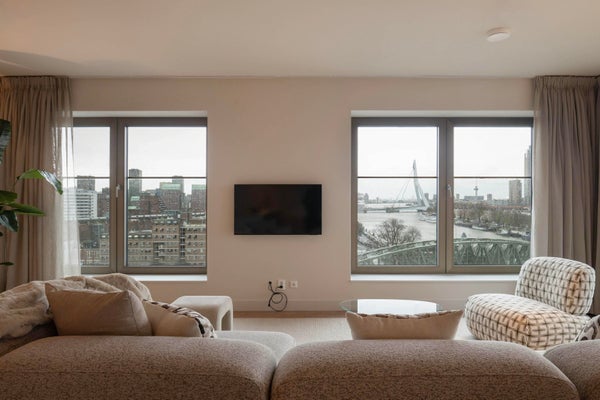 Te huur: luxe 3-slaapkamer appartement met panoramisch uitzicht op De Hef & Erasmusbrug – 111 m² – balkon – parkeerplaats