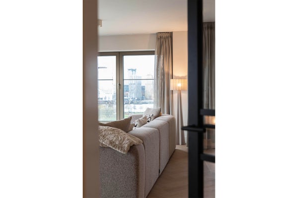 Wonen op niveau, midden in een moderne stadswijk waar water, historie en nieuwbouw samenkomen. Dit royaal bemeten appartement van 111 m² ligt op de 9e verdieping en is volledig nieuw gemeubileerd, hoogwaardig afgewerkt en direct instapklaar. Het uitzicht op de Erasmusbrug en De Hef is elke dag indrukwekkend.