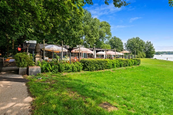 Via de gezamenlijke entree met brievenbussen betreed je de woning op de begane grond. In de ruime hal bevindt zich een garderobenis. Vanuit hier geeft een schuifdeur toegang tot de lichte woonkamer, die een prachtig uitzicht biedt over het water van de Kralingse Plas – een zeldzaam mooie plek om thuis te komen. De open keuken is praktisch ingericht en uitgerust met onder andere een spoelbak, magnetron, koel-/vriescombinatie en wasmachine.