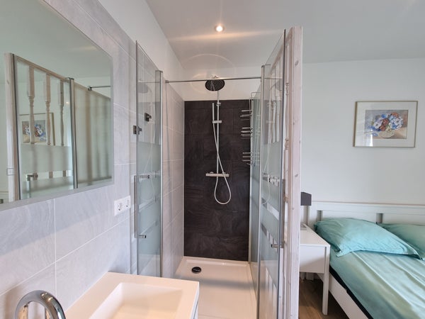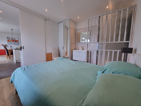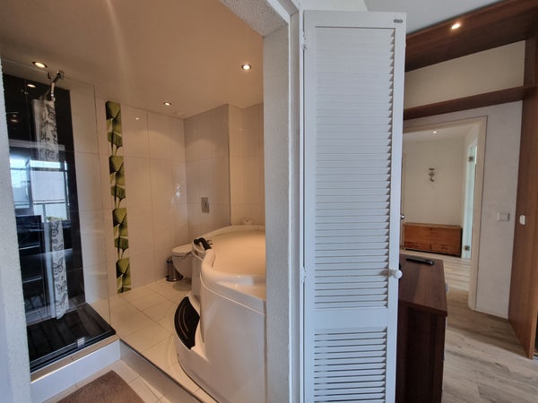 De moderne, betegelde badkamer is uitgerust met een douche. De royale hoofdslaapkamer biedt toegang tot het balkon. De tweede slaapkamer is ingericht met een tweepersoonsbed en opbergruimte en geeft tevens toegang tot de tweede badkamer.