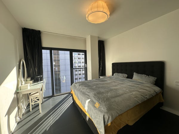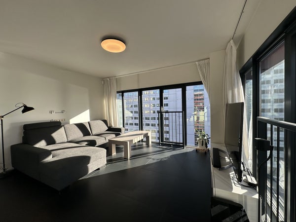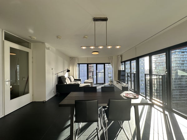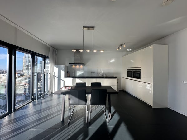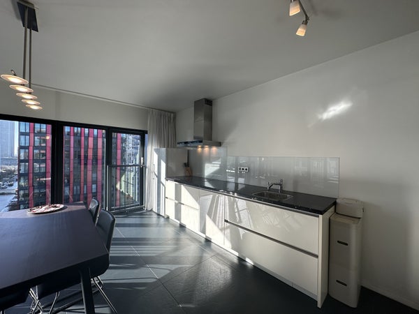 Gemeubileerd 3-kamer appartement aan de Scheepmakerspassage – Perfect voor 2 studenten! Dit volledig gemeubileerde 3-kamer appartement, gelegen in het hart van Rotterdam, biedt niet alleen een uniek uitzicht over de stad, maar ook het gemak van een moderne, comfortabele leefomgeving. Gelegen in het dynamische centrum, combineert deze locatie stedelijke voorzieningen met een ontspannen sfeer, perfect voor 2 studenten die op zoek zijn naar een centraal gelegen en goed bereikbaar appartement. Locatie: Het appartement bevindt zich op loopafstand van talloze winkels, gezellige cafés, restaurants en culturele hotspots, zoals de Markthal en de Oude Haven. Voor openbaar vervoer is de locatie ideaal: treinstation Blaak en meerdere tram- en metrolijnen bevinden zich op slechts een steenworp afstand. Ook de uitvalswegen A15, A16 en A20 zijn snel en eenvoudig te bereiken, waardoor omliggende steden gemakkelijk toegankelijk zijn. Indeling: Woonkamer: Ruime, lichte woonkamer met een comfortabele zithoek en een mooi uitzicht over de stad. Ideaal voor een gezellige avond of studeren. Keuken: De keuken is modern en volledig uitgerust met alle benodigde apparatuur, zoals een vaatwasser, combi-oven, koelkast en vriezer, perfect voor het bereiden van maaltijden. Slaapkamers: Twee aparte slaapkamers, voorzien van een bureau en voldoende kastruimte voor de persoonlijke spullen van 2 studenten. Badkamer: De moderne, volledig betegelde badkamer beschikt over een inloopdouche, een ligbad en een wastafel met spiegel. Extra voorzieningen: Een apart toilet en een praktische bergkast in het appartement. Ook aanwezig zijn een wasmachine en droger voor extra gemak. Bijzonderheden: Volledig gemeubileerd met stijlvolle meubels en accessoires. Veel natuurlijk licht door de grote ramen. Prachtig uitzicht over de stad. Perfecte locatie met gemakkelijke toegang tot winkels, restaurants en openbaar vervoer. Geschikt voor 1 of 2 personen, ideaal voor 2 studenten die op zoek zijn naar een centrale en goed bereikbare woonruimte.
