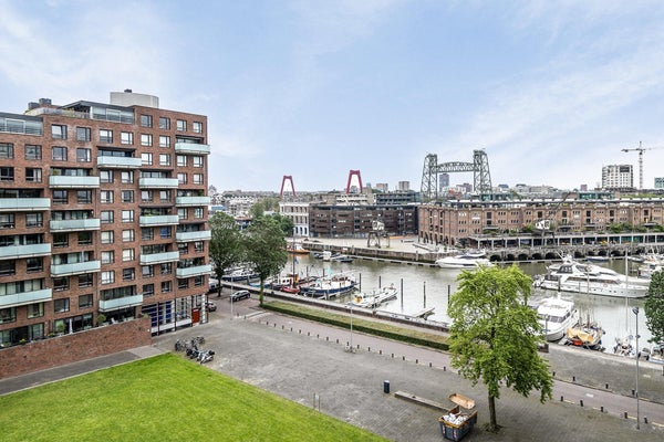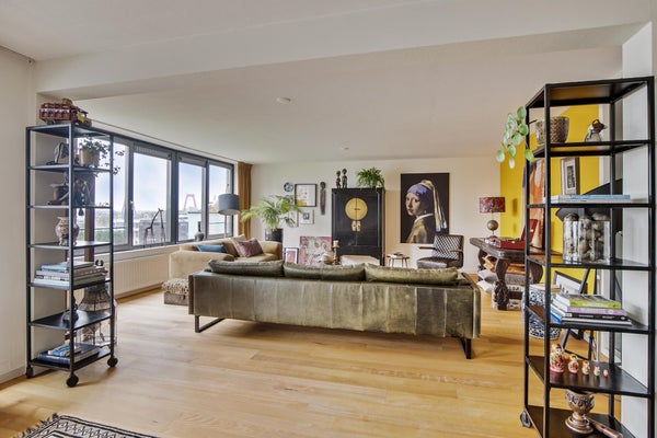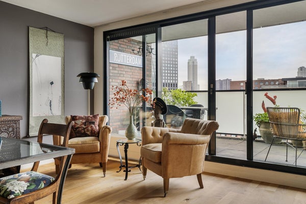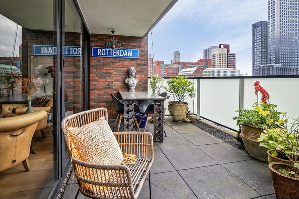 Ruim en sfeervol gemeubileerd 3-kamerappartement van 135 m2 , verdeeld over 2 verdiepingen, met een ruim balkon met uitzicht over de skyline van Rotterdam.