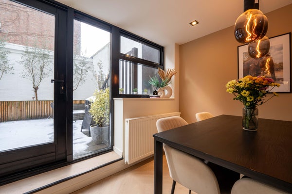 De privétuin (40 m²) is volledig gemeubileerd met een BBQ, eettafel voor 6 personen en een loungeset, ideaal voor leven in de buitenlucht in de stad. De garage met elektrische deur biedt veilige en handige parkeergelegenheid direct naast het appartement. De garage is ook perfect voor het parkeren van fietsen.
