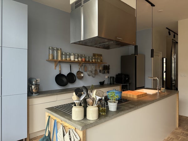 Via een aparte entree kom je binnen in de open hal op de eerste verdieping. De ruime woonkamer is sfeervol ingericht met een hoekbank, dressoir, televisie, bureau en fauteuil. Aansluitend bevindt zich de eetkamer met open keuken, voorzien van een royale eettafel en kookeiland. De keuken beschikt over een gaskookplaat, afzuigkap, vaatwasser, koelkast, vrieskast, spoelbak en volop opbergruimte. Op deze verdieping bevindt zich tevens een separaat toilet en een opbergkast.