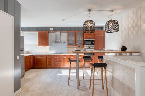 De moderne open keuken gaat naadloos over in de woonkamer, waardoor er een heldere en uitnodigende ruimte ontstaat die perfect is voor koken, dineren en entertainen. Grote ramen vullen de woning met natuurlijk licht, terwijl kwaliteitsafwerkingen door het hele huis bijdragen aan het comfortabele, hedendaagse gevoel.