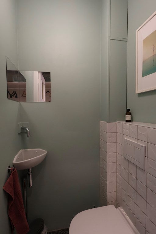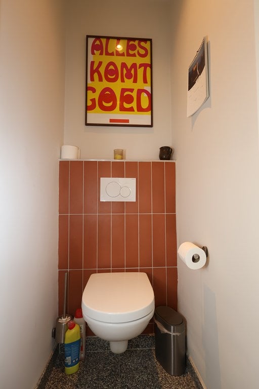 Mooie entree met toilet en ingebouwde kast voor jassen en schoenen.