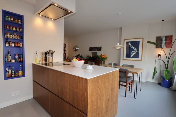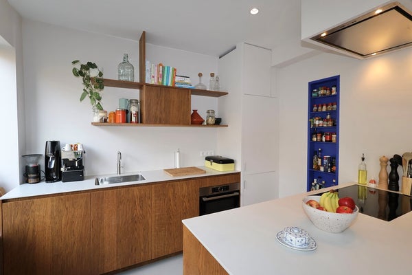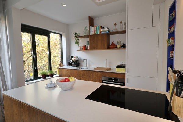 Ze is uitgerust met moderne inbouwapparatuur, waaronder een inductiekookplaat, oven, vaatwasser, koelkast en vriezer, en beschikt bovendien over veel kastruimte.