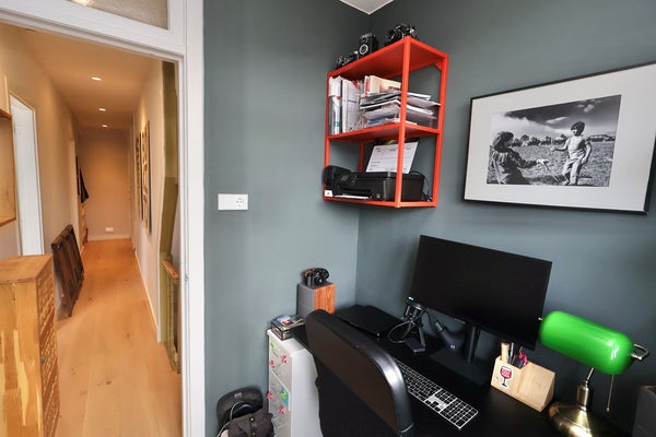 Via de studie/werkkamer aan de achterzijde is er toegang naar een balkonnetje.