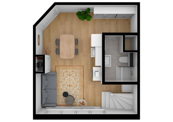 Indeling: Dit appartement is verdeeld over 2 woonlagen, 1e verdieping en een entresol. Entree op de 1e verdieping, direct toegang tot het woon en eetgedeelte met eigentijdse keuken. Ook bevindt hier de badkamer en een ruimte met was/droogcombinatie. Via de trap toegang tot de entresol, waar de slaapkamer te vinden is.