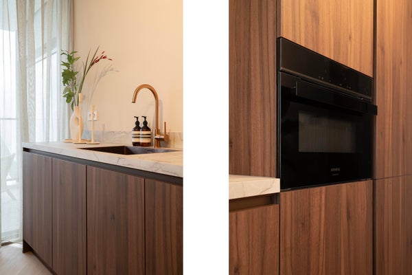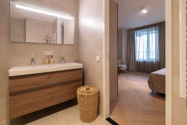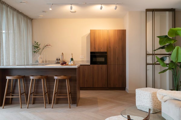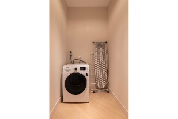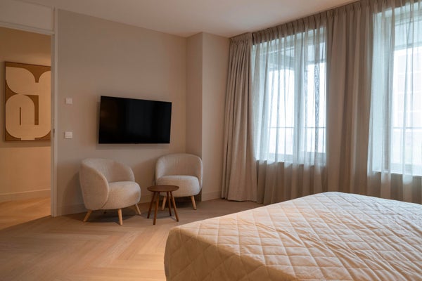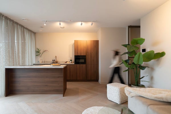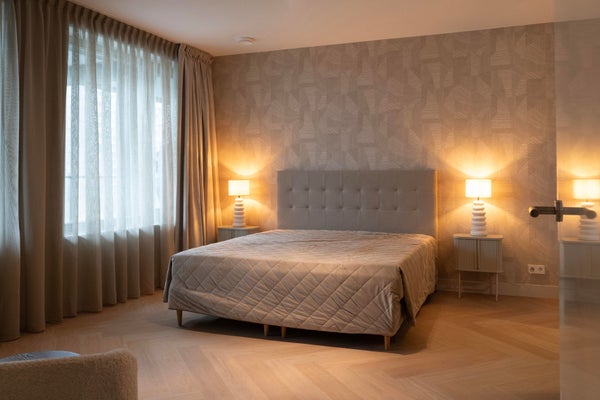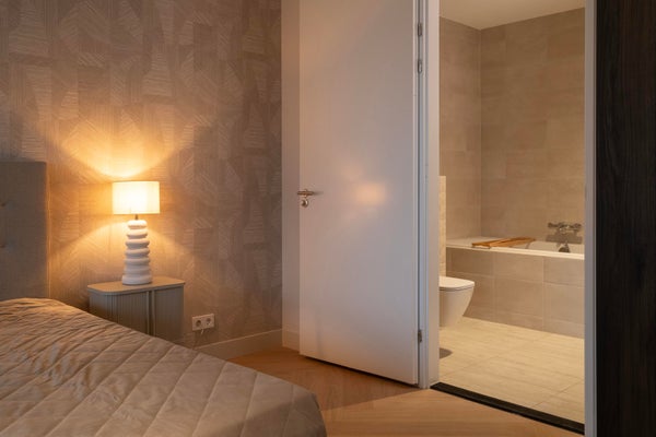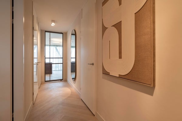 Het appartement is volledig en stijlvol ingericht door een interieurstylist. Je hoeft alleen je koffer mee te nemen. Denk aan luxe meubilair, compleet uitgeruste keuken, vloerverwarming in alle vertrekken en een geavanceerd domoticasysteem voor verlichting en temperatuur. Ook is er een concierge service in het gebouw.
