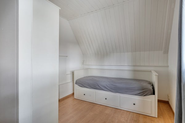 Het zolderniveau biedt praktische ruimte met een wasmachine, droger en extra opbergruimte, ideaal voor bagage of seizoensgebonden artikelen.