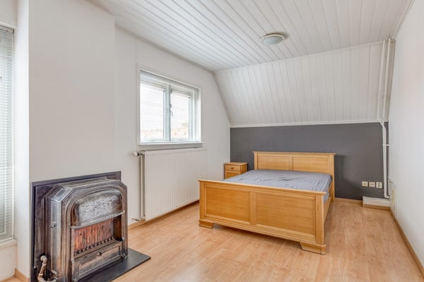 Een trap leidt naar de bovenverdieping, waar u twee comfortabele slaapkamers vindt: De hoofdslaapkamer biedt royale ruimte en directe toegang tot een privébalkon met uitzicht op de buurt. De tweede slaapkamer kan dienen als kinderkamer, gastenkamer of thuiswerkplek.