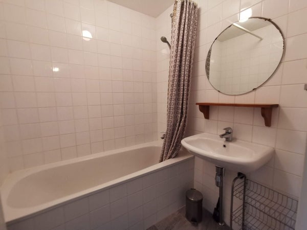 Het appartement beschikt over een ruime slaapkamer, een badkamer met ligbad en een aparte wasruimte voor extra gemak in het dagelijks leven.