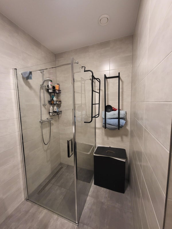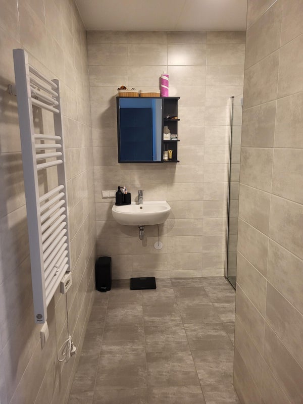 Een van de hoogtepunten van dit appartement is ongetwijfeld de moderne, tot aan het plafond betegelde badkamer en het afzonderlijke toilet. In de luxe badkamer vind je een inloopdouche en wasbak met grote spiegel, waardoor deze ruimte perfect is om jezelf te verzorgen en te ontspannen.