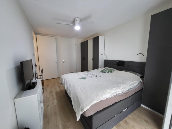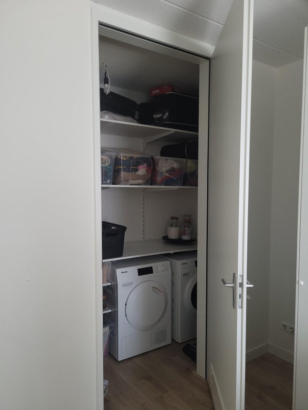 Dit appartement biedt twee ruime slaapkamers, waarvan de grootste slaapkamer direct toegang heeft tot de praktische wasruimte. Deze wasruimte is ruim opgezet en beschikt over aansluitingen voor zowel een wasmachine als een droger.