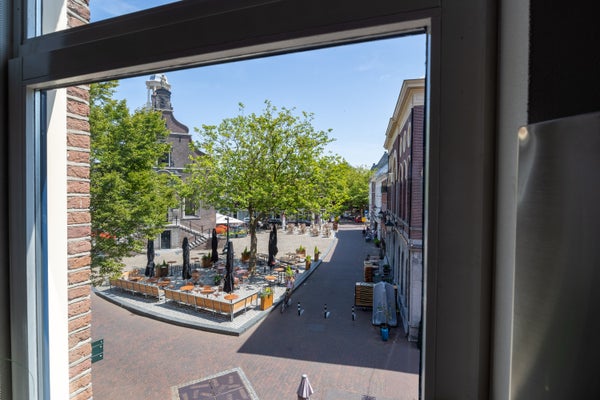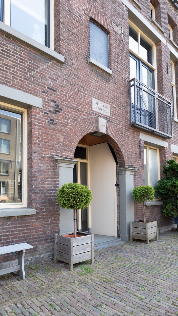 De woning ligt in het hart van Schiedam, tussen de Schie en de Grote Markt. Vanuit de woonkamer kijkt u direct uit op de Grote Markt, waar u diverse horecagelegenheden en winkels vindt. Alle voorzieningen, zoals supermarkten, horeca en de bibliotheek, bevinden zich op loopafstand. Ook het openbaar vervoer en de uitvalswegen zijn binnen enkele minuten bereikbaar, waardoor steden als Rotterdam, Den Haag en Delft snel te bereiken zijn.
