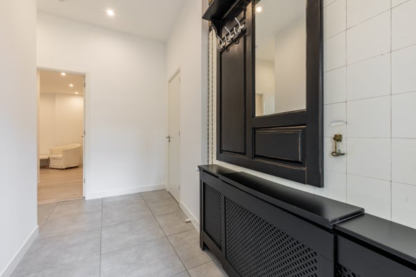 Eigen entree direct aan de gezellige winkelstraat. Ruime hal met garderobe, die toegang biedt tot het toilet, de slaapkamer en de woonkamer. De lichte woonkamer heeft een comfortabel zitgedeelte en een grote eettafel, en staat in open verbinding met de moderne keuken die voorzien is van veel kastruimte. Aan de rustige achterzijde bevindt zich de slaapkamer met een groot raam, een tweepersoonsbed en meerdere kasten. Vanuit de slaapkamer is er een ruimte bereikbaar die zeer geschikt is om als kantoor ruimte te gebruiken. Tevens vanuit de slaapkamer is de badkamer bereikbaar. Deze is uitgerust met een inloopdouche, ligbad, wastafel en handdoekradiator, en hier is ook plek voor de wasmachine. Tot slot is er een royale kelder aanwezig.