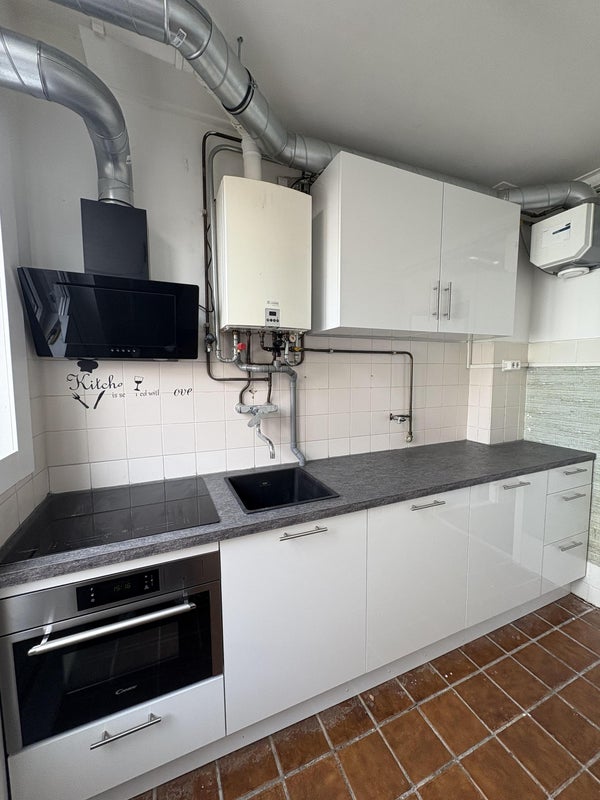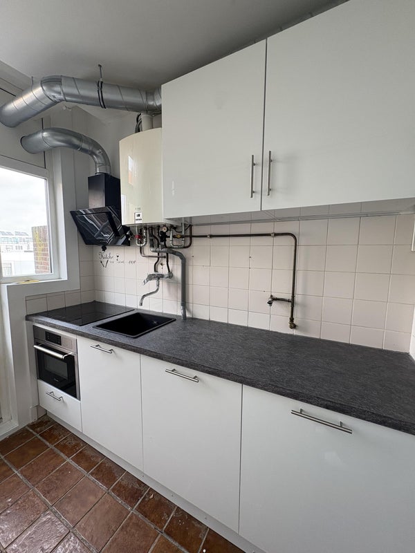 - De keuken is voorzien van een combi oven/magnetron, een koelkast met vriesvak, vaatwasser, inductiekookplaat,