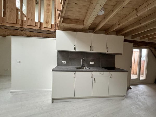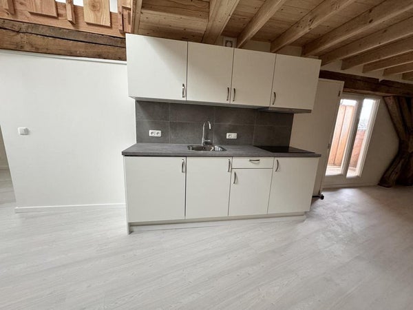 De keuken is uitgerust met een inductie kookplaat, koelkast met vriesvakje, afzuigkap en voldoende bergruimte.