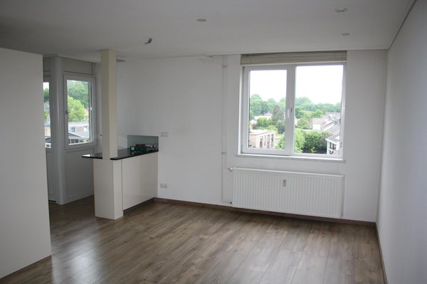 Royale entree (circa 7m2). Ruime woonkamer (3.49 x 10.32) met laminaatvloer, veel lichtinval, schitterend uitzicht over het centrum. Open keuken (circa 8m2) v.v. moderne aanbouwkeuken met apparatuur (vaatwasser, koelkast met vriesvak, ceramische kookplaat, afzuigkap, oven en magnetron). Vanuit de keuken is het overdekte balkon bereikbaar. Slaapkamer (4.06 x 4.70) voorzien van ruime inbouwkast. De slaapkamer staat in open verbinding met de badkamer (2.54 x 1.94) voorzien van 2 wastafels, toilet, inloopdouche met glazen douchedeur en tegelvloer.