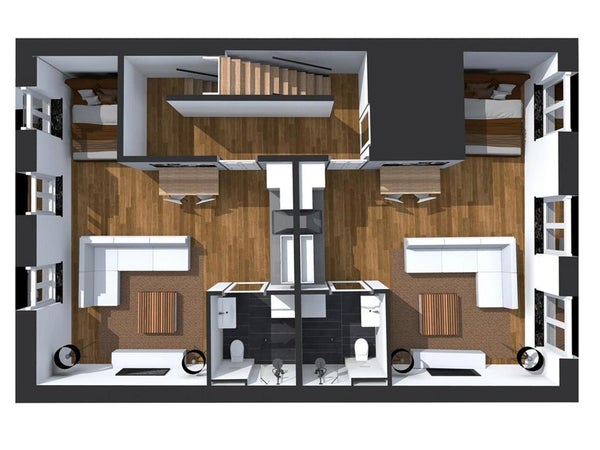 - voorzien van een PVC-laminaat vloer met als groot voordeel dat het stiller en warmer is dan gewone laminaat;
