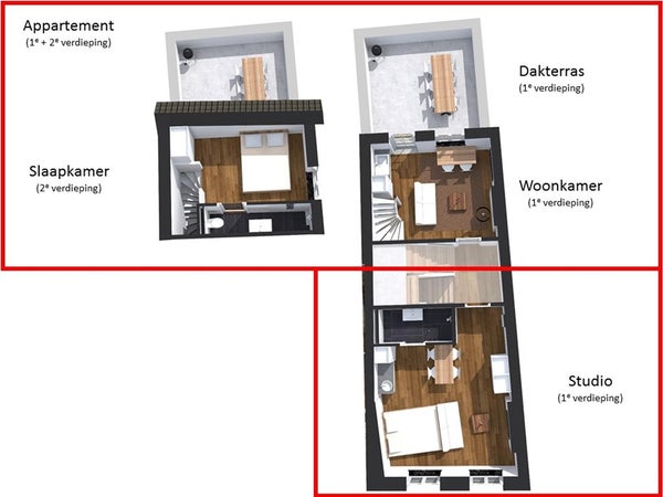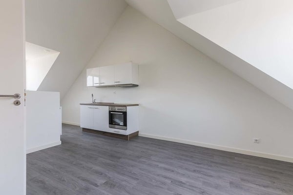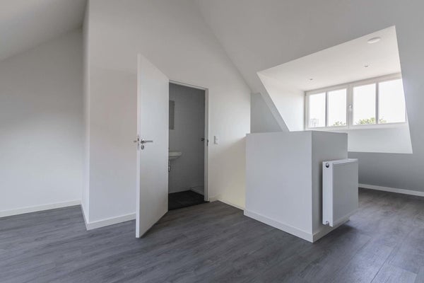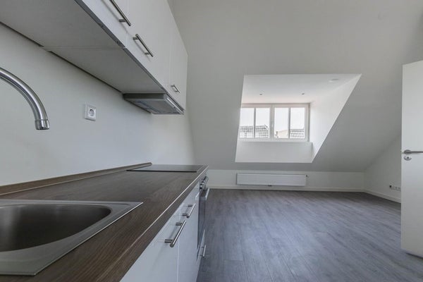 Gelegen deze mooie studio op de bovenste verdieping van dit complex. Grote dakkapellen aan de voor- en achterkant zorgen voor veel leefruimte. De trap scheidt het woon- en slaapgedeelte van elkaar.