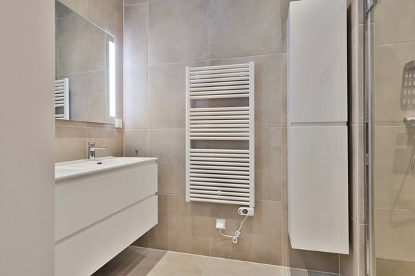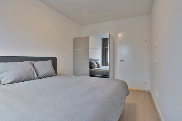 Bij binnenkomst word je begroet door een heldere gang die de toon zet voor de rest van het appartement. Direct aan je rechterhand bevindt zich een apart, modern toilet. Vlak naast het toilet vind je een prachtig afgewerkt badkamer met een douche, dubbele wastafel, extra kast en grote spiegel.