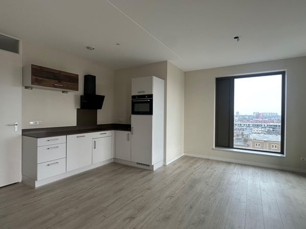 Dankzij de hoekligging geniet je van speelse indelingen en extra veel natuurlijk licht met open woonkeuken en veel raampartijen waardoor het een lekker licht appartement is. De keuken is voorzien van een combi-oven, koelvriescombi, inductiekookplaat en recirculatie afzuigkap. De tweede kamer kan eenvoudig worden ingericht als comfortabele tweede slaapkamer en wordt in diverse soortgelijke woningen ook op die manier gebruikt. Maar ook als werkkamer is deze kamer uitermate geschikt met een fijn uitzicht over de stad.