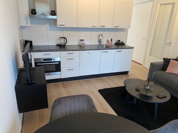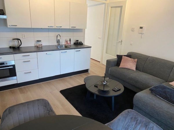 Het appartement heeft een ruime woonkamer met open keuken, 1 aparte slaapkamer en ruime badkamer met douche, wastafel en wasmachine aansluiting, een buitenruimte ( terras ) en een eigen prive berging.