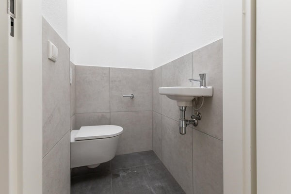Op de tweede verdieping vindt u een ruime slaapkamer met een stijlvolle boxspring. De grote ramen zorgen voor veel natuurlijk licht, en vanuit de slaapkamer is de badkamer bereikbaar. Deze is modern afgewerkt met een douche en wastafel. Daarnaast beschikt de woning over een kleine, praktische buitenruimte, ideaal voor een ochtendkoffie of een ontspannen avond buiten.