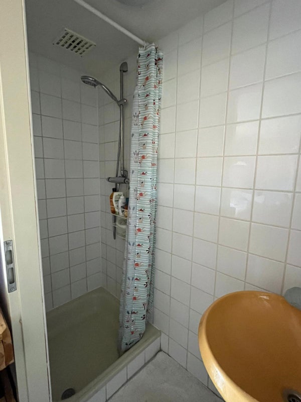 Deze studio heeft een eigen wastafel, douche en een apart toilet. De keuken deel je met de andere bewoners.